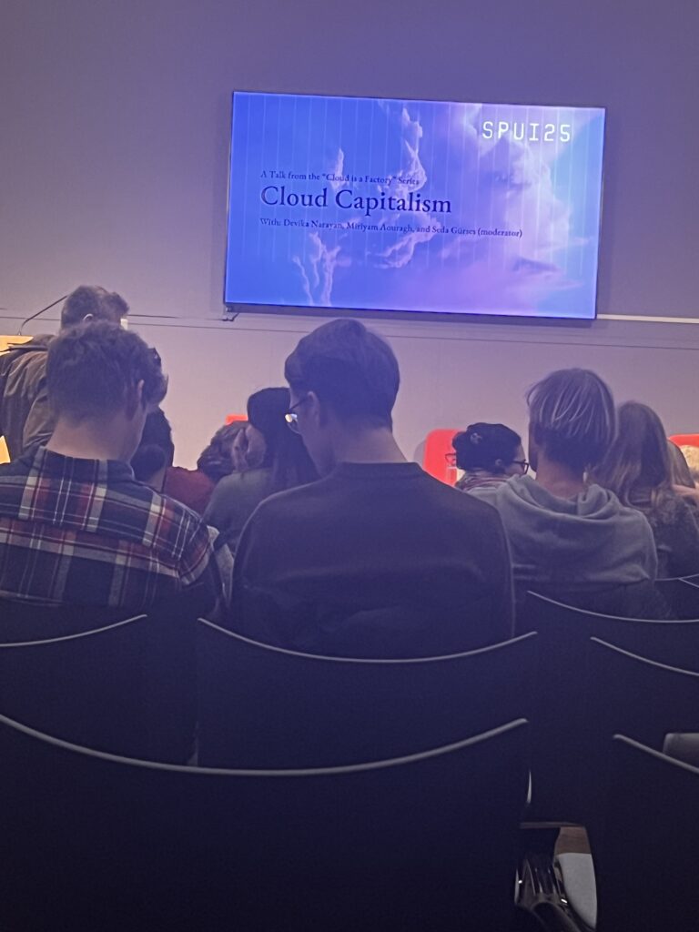 Het was een avond bij SPUI25 die onderdeel is van de serie The Cloud is a Factory. Het ging over het idee dat de cloud niet een abstracte wolk is, maar een fabriek. De sprekers legden uit hoe een paar grote bedrijven, zoals Amazon, Google en Microsoft, de hele digitale infrastructuur bezitten en hoe dat onze hele economie en maatschappij verandert. Het is een vorm van ‘cloud kapitalisme’ waarbij softwareproductie centraal staat en alles afhankelijk is geworden van deze systemen.
